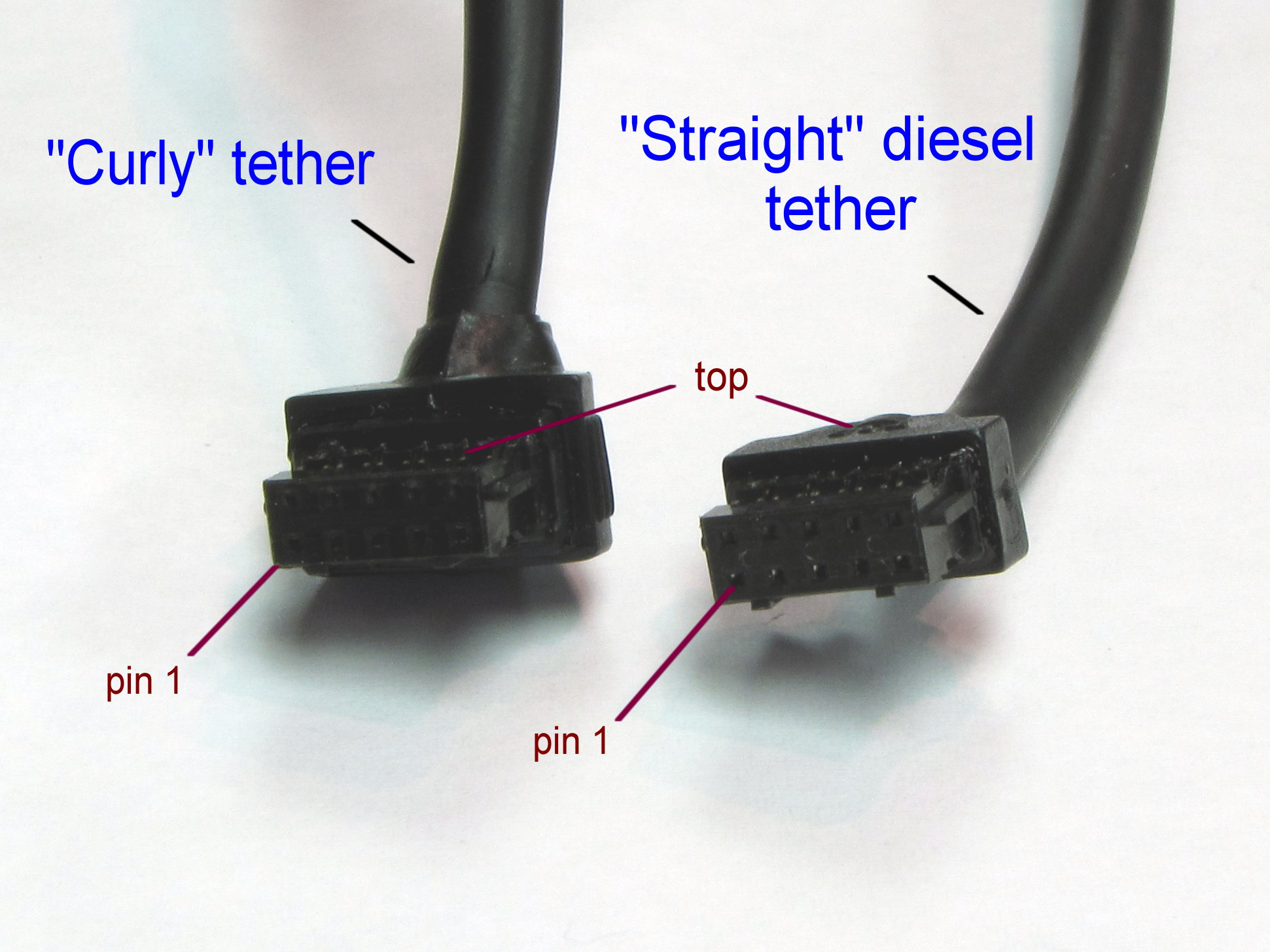 The goal is to determine how the pins are connected from the engine connector to the connector inside the tender via the existing "curly" tether. Don't assume that the pin numbers match one for one. In other words, don't assume pin1 on the engine connector goes to pin 1 on the connector inside the tether. Once we know how the pins connect, we can wire the new "straight" connector to make the same pin connections.