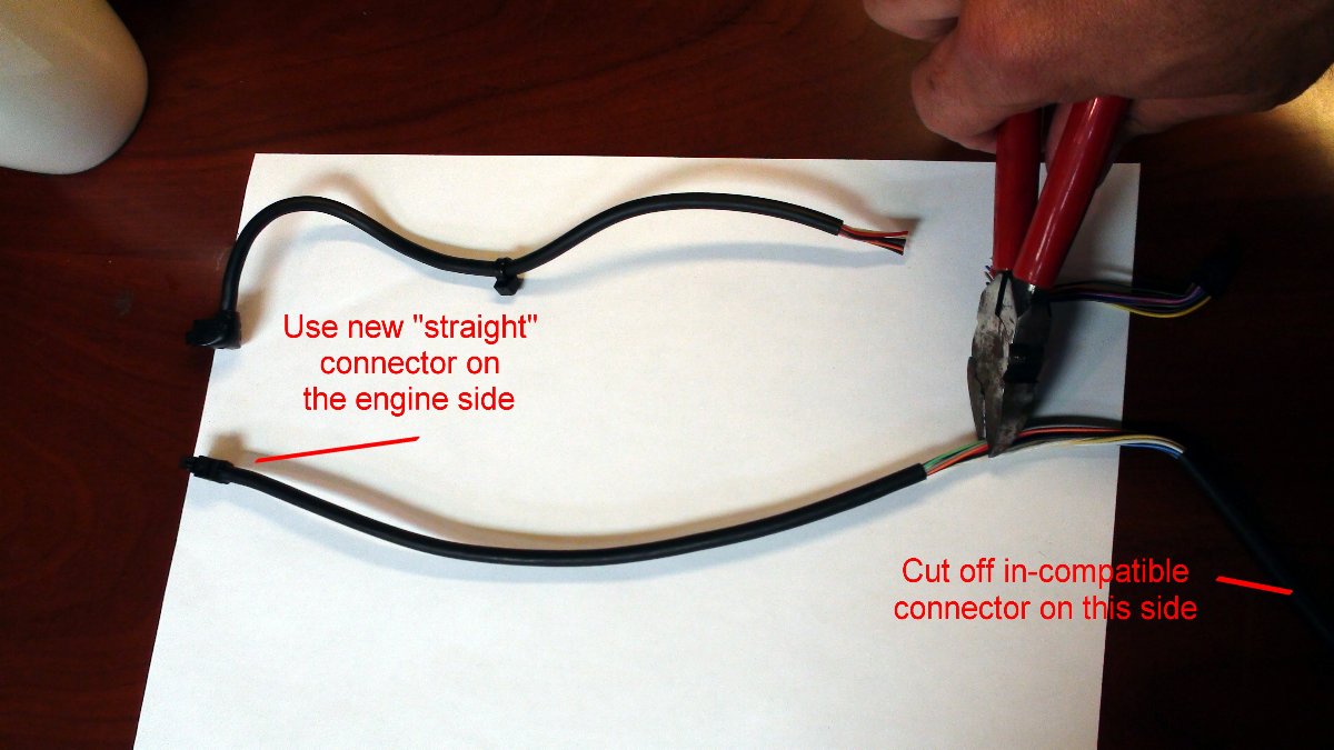 Cut off unused connector on new "straight" cable