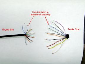 When done connecting wires, use ohmeter again to check the pin for pin connections between the engine side and tender side connector according to the table. You may also want to verify that each pin is not shorted or connected to another pin.